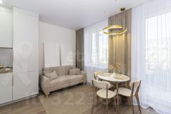 Квартира 37 кв.м. выполнена в стильном дизайнерском ремонте в теплых, приятных тонах, создавая атмосферу комфорта и уюта.