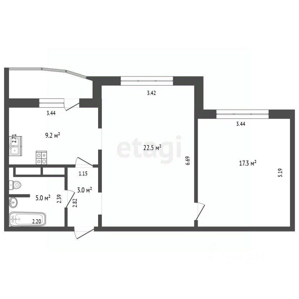 Кухня наполняет пространство светом, просторный зал, вторую комнату можно использовать как детскую, либо большую спальню, в ванной комнате также выполнена отделка плиткой, что гарантирует долговечность и лёгкость в уходе.