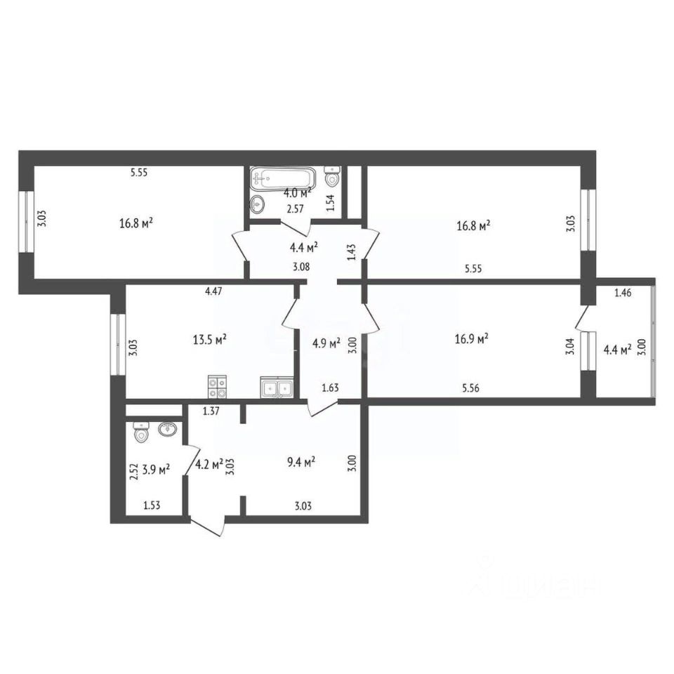Квартира имеет удачную планировку и окна на две стороны, обеспечивающие прекрасное естественное освещение.