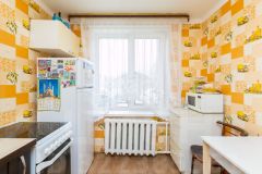 В квартире сделан косметический ремонт: стены выровнены, поклеены обои, на полу линолеум, потолки натяжные, установлены новые пластиковые окна и межкомнатные двери. В квартире остается практически все.