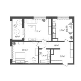 Площадь квартиры 63.1 кв.м., очень удобная планировка - большие комнаты, отдельная кухня, вместительная прихожая, теплый балкон, окна на две стороны (выходят во двор). Усиленная шумоизоляция, закрытый паркинг и двор с приватными зонами отдыха, вход в подъезд на уровне земли, три бесшумных грузопассажирских лифта, колясочная для хранения велосипедов, колясок и самокатов.