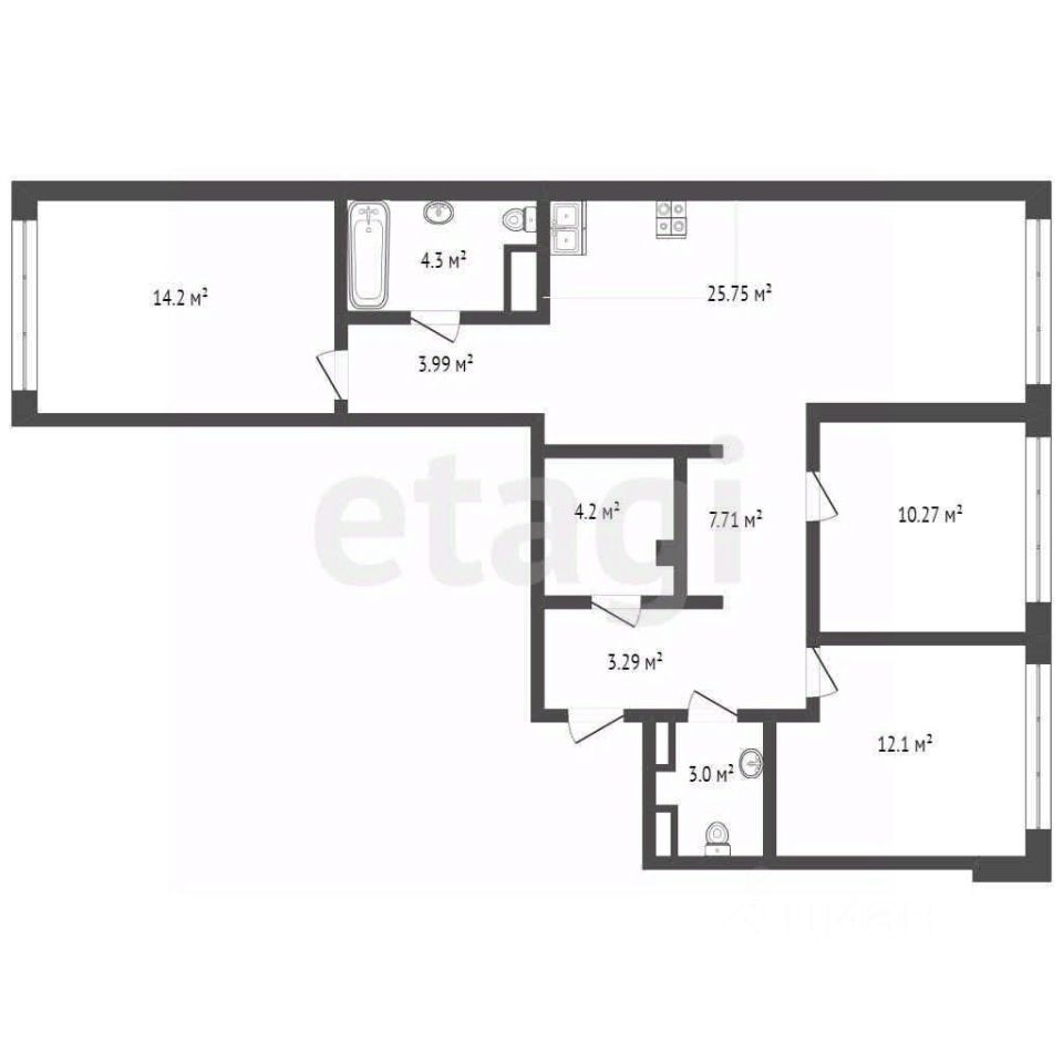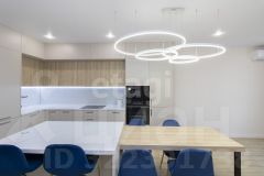Квартира состоит из трех комнат, просторной кухни-гостиной, ванной комнаты и санузла. Все комнаты имеют большие окна, которые обеспечивают достаточное количество естественного света и свежего воздуха. Кухня оснащена всей необходимой техникой и мебелью.