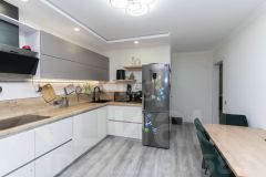 При продаже остается кухонный гарнитур со встреонной техникой.