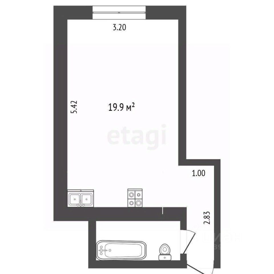 Продается просторная квартира-студия в кирпичном доме. Студия разделена на кухонную и спальную зоны.