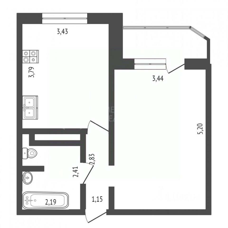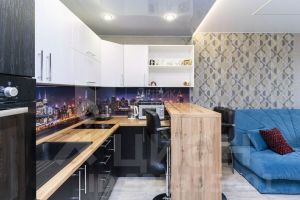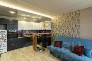 • Планировка: Просторная комната, кухня с открытой планировкой, современная ванная.