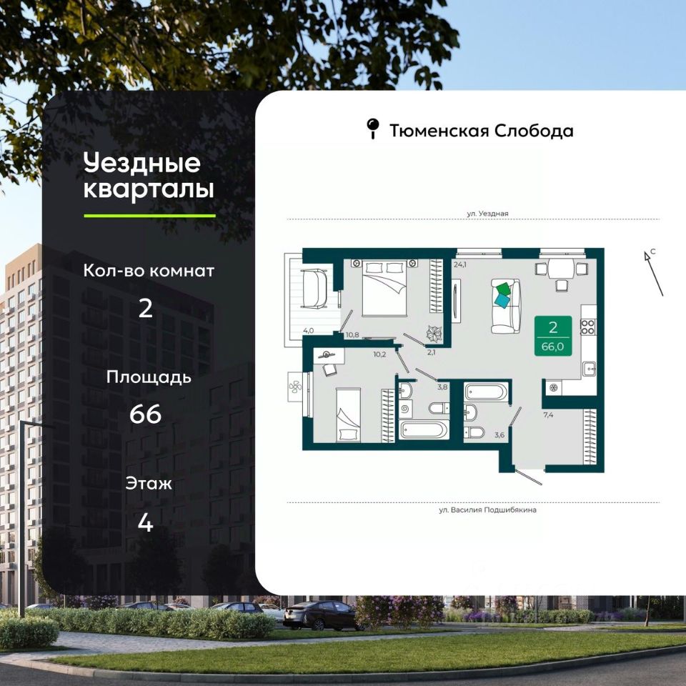 Продается 2-комн. квартира от застройщика с предчистовой отделкой в ЖК "Уездные кварталы" на 4 этаже. Общая площадь: 66 кв.м., жилая: 21 кв.м., площадь просторной кухни-столовой: 24.1 кв.м. Угловая квартира, окна oбecпeчивaют paвнoмepнoe ocвeщeниe в тeчeниe дня. В квартире одна лоджия, два совмещенных санузла. Высота потолков 2.72 м.