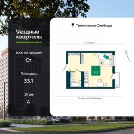 Продается 1-комн. квартира-студия в ЖК "Уездные кварталы" на 4 этаже. Квартира без отделки, новый владелец может сделать ремонт по своему дизайн-проекту. Общая площадь: 33.1 кв.м., площадь гостиной 22.9 кв.м., из которых 5 кв.м. выделено под кухонную зону. Все окна выходят на одну сторону. В квартире один балкон, один совмещенный санузел. Высота потолков 2.72 м.
