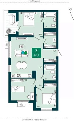 Продается трехкомнатная квартира с предчистовой отделкой в ЖК "Уездные кварталы" на 4 этаже. Общая площадь: 84.1 кв.м., жилая: 34.7 кв.м., площадь просторной кухни-столовой: 26.5 кв.м. Угловая квартира, идеально подойдет любителям тишины и панорамных видов. В квартире одна лоджия, два совмещенных санузла. Высота потолков 2.72 м.
