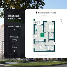 Двухкомнатная квартира от застройщика в ЖК "Уездные кварталы" на 3 этаже. Квартира без отделки, новый владелец может сделать ремонт по своему дизайн-проекту. Общая площадь: 67.3 кв.м., жилая: 25.6 кв.м., площадь просторной кухни-столовой: 22.5 кв.м. Квартира угловая, очень светлая, естественная вентиляция при открытии окон. В квартире одна лоджия, два совмещенных санузла. Высота потолков 2.72 м.