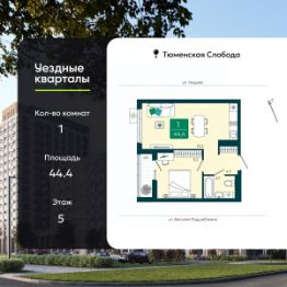 1-комн. квартира с предчистовой отделкой в ЖК "Уездные кварталы" на 5 этаже. Общая площадь: 44.4 кв.м., жилая: 11.2 кв.м., площадь просторной кухни-столовой: 22.2 кв.м. Все окна выходят на одну сторону. В квартире одна лоджия, один совмещенный санузел. Высота потолков 2.72 м.