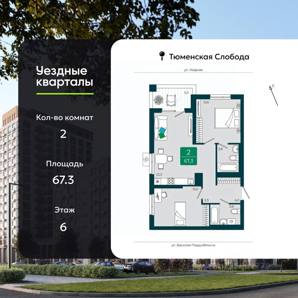 Просторная 2-комн. квартира в ЖК "Уездные кварталы" на 6 этаже. Квартира без отделки, после оформления собственности можно делать ремонт. Общая площадь: 67.3 кв.м., жилая: 25.6 кв.м., площадь просторной кухни-столовой: 22.5 кв.м. Угловая квартира, идеально подойдет любителям тишины и панорамных видов. В квартире одна лоджия, два совмещенных санузла. Высота потолков 2.72 м.