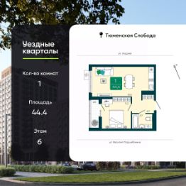 Продается 1-комн. квартира с предчистовой отделкой в ЖК "Уездные кварталы" на 6 этаже. Общая площадь: 44.4 кв.м., жилая: 11.2 кв.м., площадь просторной кухни-столовой: 22.2 кв.м. Все окна выходят на одну сторону. В квартире одна лоджия, один совмещенный санузел. Высота потолков 2.72 м.