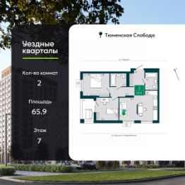 Двухкомнатная квартира в ЖК "Уездные кварталы" на 7 этаже. Квартира без отделки, новый собственник может сделать ремонт по своему дизайн-проекту. Общая площадь: 65.9 кв.м., жилая: 22.3 кв.м., площадь просторной кухни-столовой: 19.5 кв.м. Квартира угловая, очень светлая, естественная вентиляция при открытии окон. В квартире одна лоджия, два совмещенных санузла. Высота потолков 2.72 м.