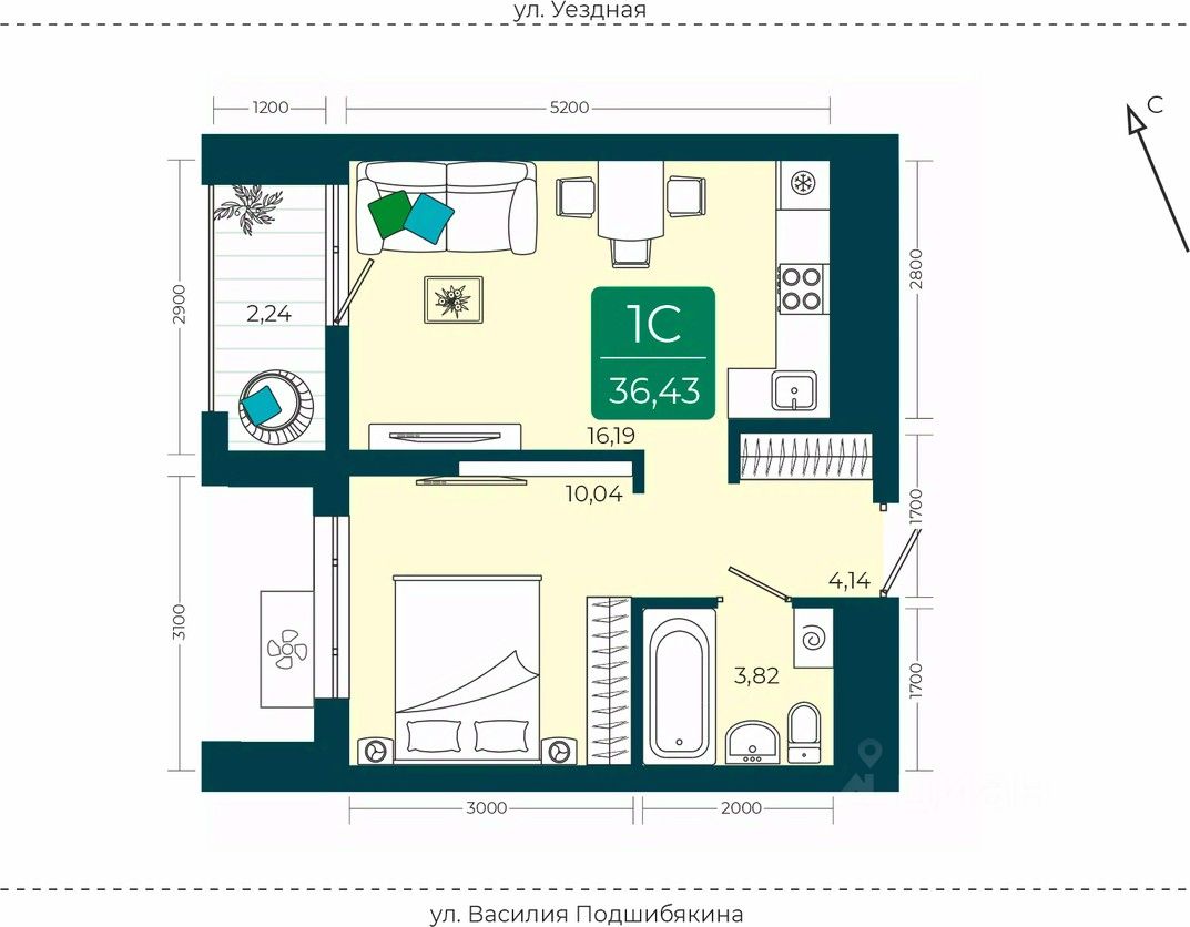 Однокомнатная квартира с предчистовой отделкой в ЖК "Уездные кварталы" на 22 этаже. Общая площадь: 36.43 кв.м., жилая: 10.04 кв.м., площадь просторной кухни-столовой: 16.19 кв.м. Все окна выходят на одну сторону. В квартире один балкон, один совмещенный санузел. Высота потолков 2.6 м.