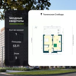 Просторная однокомнатная квартира в ЖК "Уездные кварталы" на 3 этаже. Квартира без отделки, после получения ключей можно делать ремонт. Общая площадь: 53.11 кв.м., жилая: 11.61 кв.м., площадь просторной кухни-столовой: 18.41 кв.м. Все окна выходят на одну сторону. В квартире один балкон, один совмещенный санузел. Терраса представляет собой роскошную зону отдыха, где вы на свой вкус можете создать атмосферу комфорта и уюта. Высота потолков 2.7 м.
