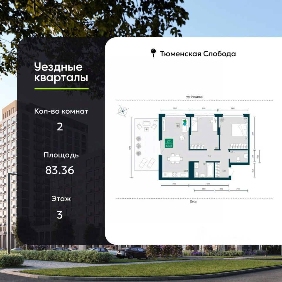 2-комн. квартира от застройщика в ЖК "Уездные кварталы" на 3 этаже. Квартира без отделки, полностью готова к ремонту. Общая площадь: 83.36 кв.м., жилая: 25.82 кв.м., площадь просторной кухни-столовой: 23.18 кв.м. Квартира угловая, окна oбecпeчивaют paвнoмepнoe ocвeщeниe в тeчeниe дня. В квартире один балкон, один совмещенный и один раздельный санузел. Терраса представляет собой роскошную зону отдыха для проведение вечеров в кругу семьи и друзей или организация вечеринок. Высота потолков 2.7 м.