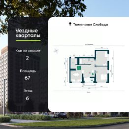 2-комн. квартира с предчистовой отделкой в ЖК "Уездные кварталы" на 6 этаже. Общая площадь: 67 кв.м., жилая: 26.88 кв.м., площадь просторной кухни-столовой: 21.09 кв.м. Угловая квартира, окна oбecпeчивaют paвнoмepнoe ocвeщeниe в тeчeниe дня. В квартире один балкон, один совмещенный санузел. Высота потолков 2.7 м.