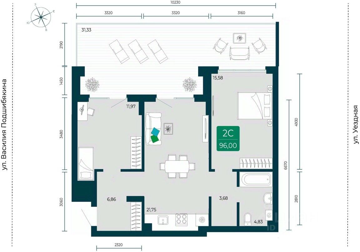 Продается двухкомнатная квартира с предчистовой отделкой в ЖК "Уездные кварталы" на 1 этаже. Общая площадь: 96 кв.м., жилая: 27.55 кв.м., площадь просторной кухни-столовой: 21.75 кв.м. Комнаты изолированные, все окна выходят на одну сторону. В квартире один балкон, один совмещенный санузел. Наличие террасы в квартире открывает возможность для создания зон отдыха в кругу семьи и друзей. Высота потолков 2.7 м.