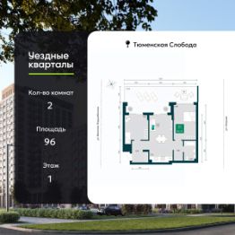2-комн. квартира от застройщика в ЖК "Уездные кварталы" на 1 этаже. Квартира без отделки, новый собственник может сделать ремонт по своему дизайн-проекту. Общая площадь: 96 кв.м., жилая: 27.55 кв.м., площадь просторной кухни-столовой: 21.75 кв.м. Комнаты изолированные, все окна выходят на одну сторону. В квартире один балкон, один совмещенный санузел. Терраса представляет собой роскошную зону отдыха, где вы на свой вкус можете создать атмосферу комфорта и уюта. Высота потолков 2.7 м.