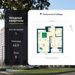 1-комн. квартира в ЖК "Уездные кварталы" на 3 этаже. Квартира без отделки, полностью готова к чистовой отделке и дальнейшему ремонту. Общая площадь: 42.5 кв.м., жилая: 10.5 кв.м., площадь просторной кухни-столовой: 20.5 кв.м. Все окна выходят на одну сторону. В квартире одна лоджия, один совмещенный санузел. Высота потолков 2.72 м.