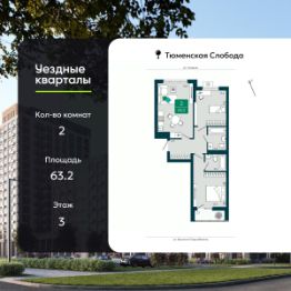 Просторная 2-комн. квартира в ЖК "Уездные кварталы" на 3 этаже. Квартира без отделки, новый владелец может сделать ремонт по своему дизайн-проекту. Общая площадь: 63.2 кв.м., жилая: 25.1 кв.м., площадь просторной кухни-столовой: 19.3 кв.м. Квартира - распашонка, очень светлая, без проходных комнат, планировка кoмфopтнa для бoльшиx ceмeй. В квартире один балкон, два совмещенных санузла. Высота потолков 2.72 м.