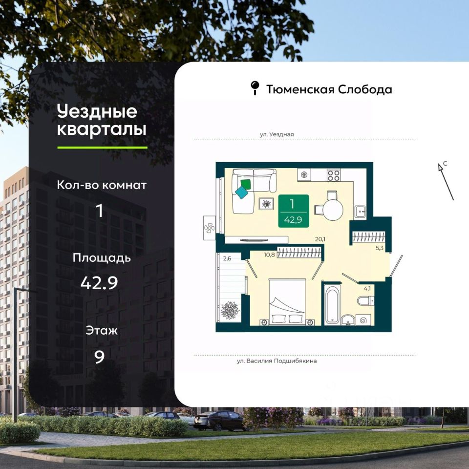 Просторная 1-комн. квартира в ЖК "Уездные кварталы" на 9 этаже. Квартира без отделки, новый собственник может сделать ремонт по своему дизайн-проекту. Общая площадь: 42.9 кв.м., жилая: 10.8 кв.м., площадь просторной кухни-столовой: 20.1 кв.м. Все окна выходят на одну сторону. В квартире одна лоджия, один совмещенный санузел. Высота потолков 2.72 м.