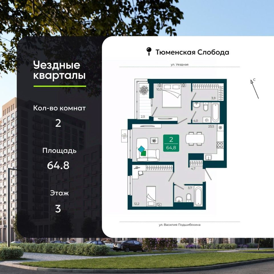 Продается 2-комн. квартира с предчистовой отделкой в ЖК "Уездные кварталы" на 3 этаже. Общая площадь: 64.8 кв.м., жилая: 22.5 кв.м., площадь просторной кухни-столовой: 23.5 кв.м. Комнаты изолированные, все окна выходят на одну сторону. В квартире одна лоджия, два совмещенных санузла. Высота потолков 2.72 м.