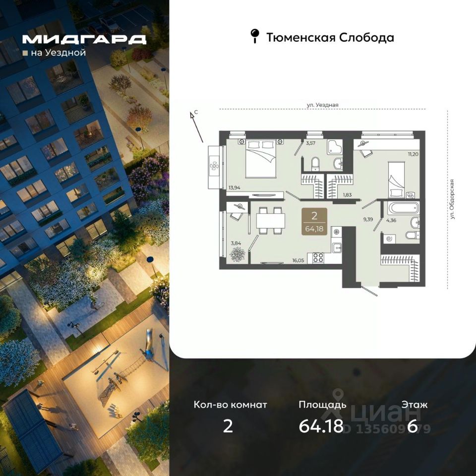 Просторная 2-комн. квартира в ЖК "Мидгард на Уездной" на 6 этаже. Квартира без отделки, новый владелец может сделать ремонт по своему дизайн-проекту. Общая площадь: 64.18 кв.м., жилая: 25.14 кв.м., площадь просторной кухни-столовой: 16.05 кв.м. Квартира угловая, идеально подойдет любителям тишины и панорамных видов. В квартире одна лоджия, два совмещенных санузла. Высота потолков 2.72 м.