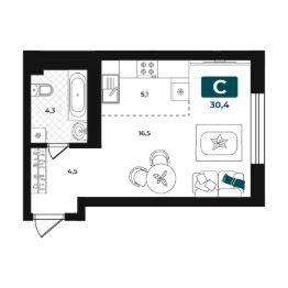 Продаётся студия в строящемся доме (ГП-1 (Тимофея Кармацкого, 18)), срок сдачи: III-кв. 2028, общей площадью 30.4 кв.м., на 2 этаже. Новый жилой комплекс от Специализированного застройщика "ИНКО" расположен по адресу: г. Тюмень по ул. Евгения Войнова.