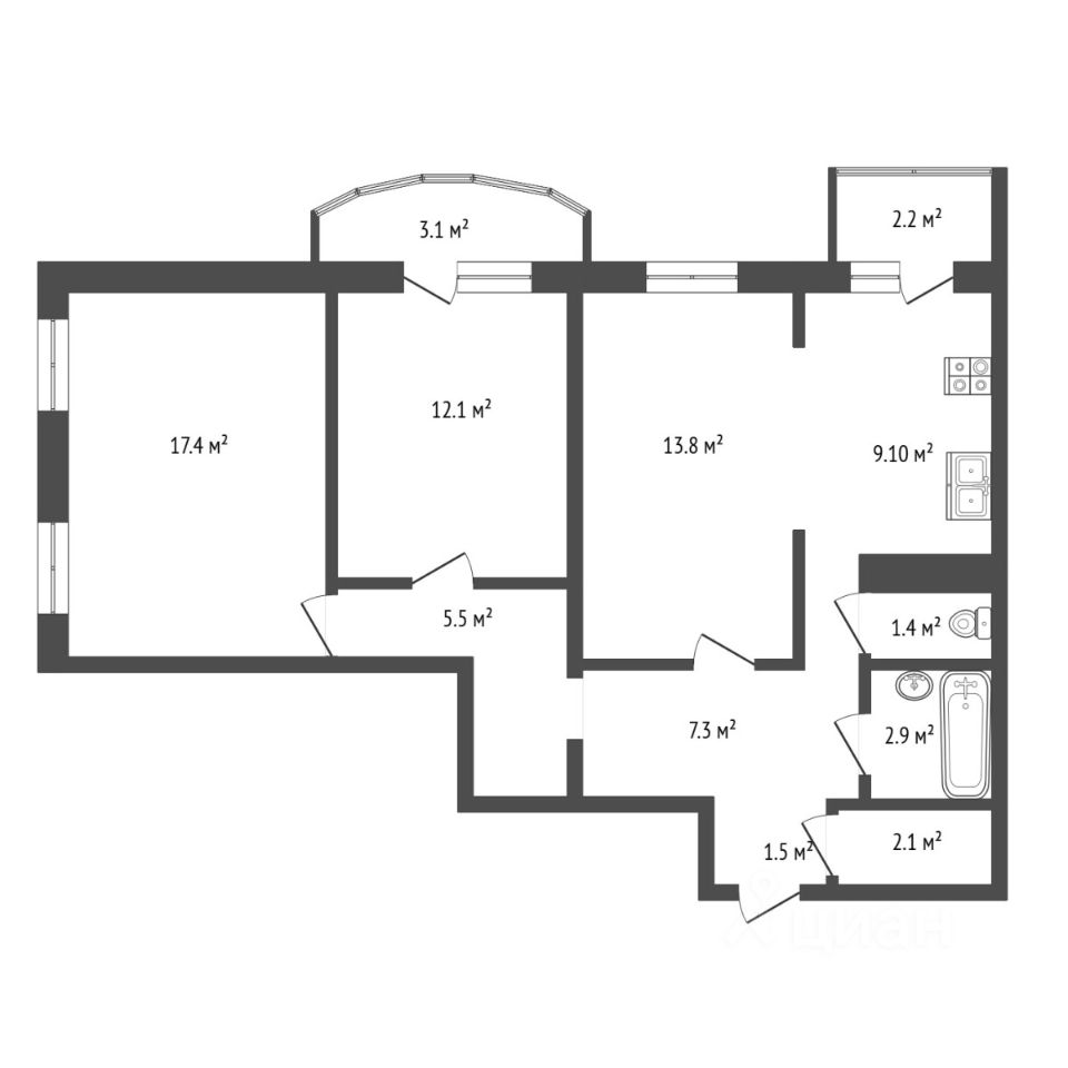 Гибкая планировка — 3 изолированные комнаты ИЛИ 2 комнаты большая кухня-гостиная