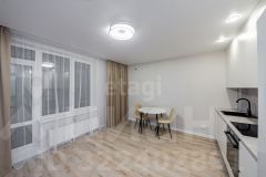 Квартира выполнена в современном стиле с использованием качественных строительных и отделочных материалов. На полу — теплый ламинат, стены оформлены стильными обоями, а потолки украшены натяжными конструкциями, что придает помещению особый шарм. В ванной комнате вы найдете элегантную керамическую плитку, которая добавляет нотку роскоши. Простороная лоджия с витражным остекленем.