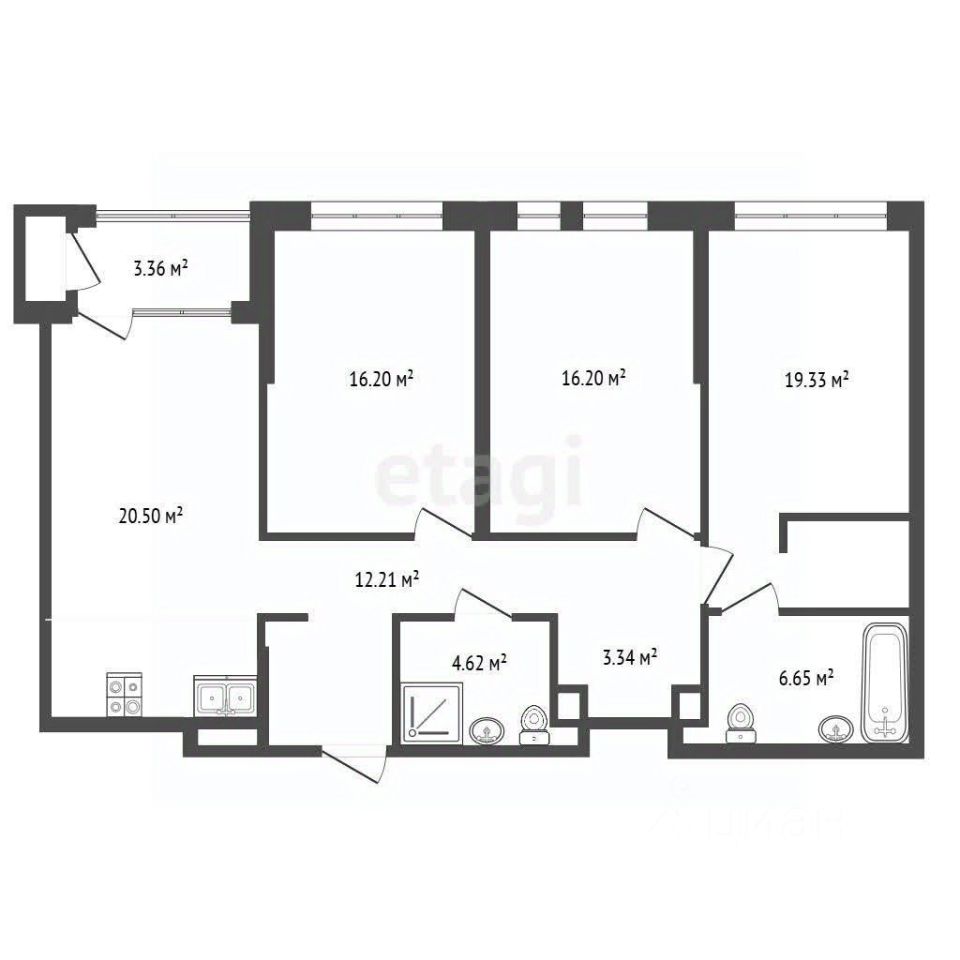 Также, 2 санузла 4.6м2 и 6.6м2 необходимы для такой квартиры