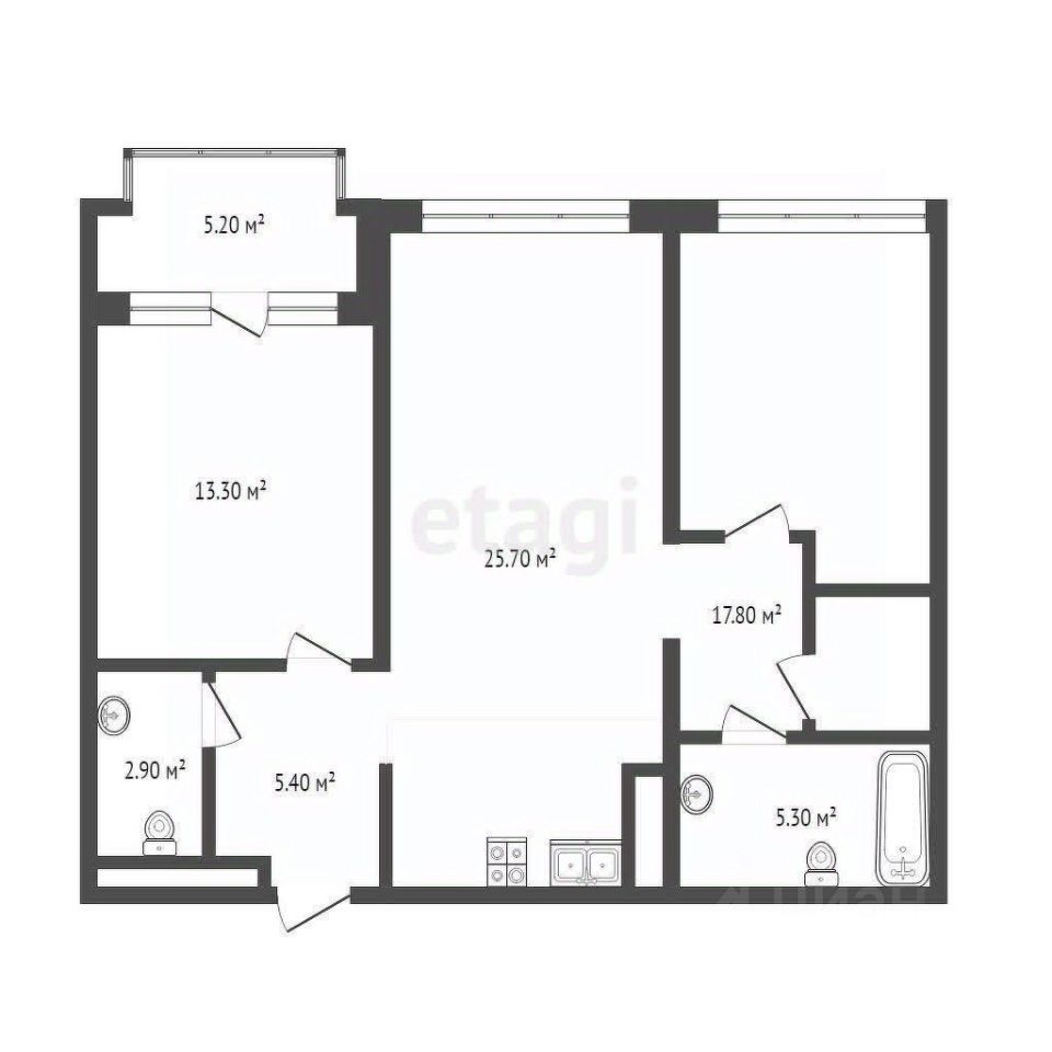 Пожалуй, самая удачная планировка у застройщика. Ни одно окно не выходит на Профзоюзный мост.