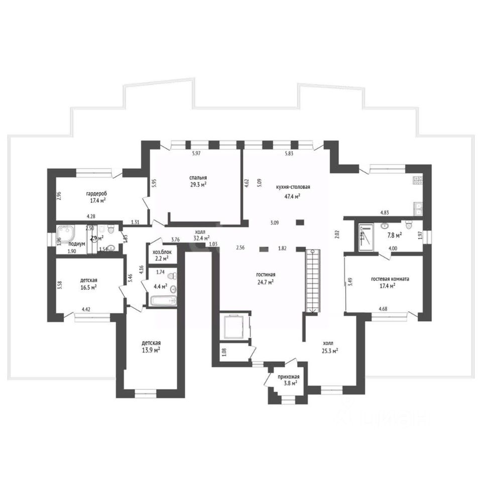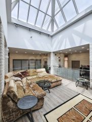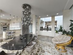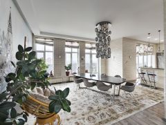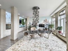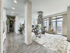 Особенность объекта — отдельный лифт, который обслуживает только эту квартиру, обеспечивая полную приватность. Практически из каждой комнаты есть выход на террасу, опоясывающую квартиру по периметру. Это пространство можно адаптировать под зону отдыха, летнюю столовую или место для встреч с видом на город.