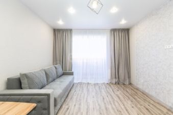 В квартире сделан свежий ремонт из высококачественных материалов, установлена современная сантехника. Вся мебель и техника остаются. Балкон облагорожен, в квартире имеется приточная подача воздуха. Вариант "заходи и живи".