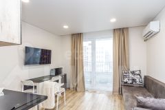 О квартире: Квартира расположена на 9 этаже, площадью 20.5 кв.м. без учета лоджии (полная площадь 24 м.кв.) . Просторный сан.узел, отдельная зона кухни, спальная зона. Шикарный вид из окна. Закрытая территория двора, без доступа посторонних и машин.