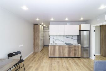 Квартира площадью 38.4 м² в новом жилом комплексе предлагает удобную планировку 1+ с продуманной организацией пространства. Кухня-гостиная 17,53 м² с двумя большими окнами обеспечивает естественное освещение в течение всего дня. Просторная спальня позволяет разместить двуспальную кровать и дополнительную мебель. Ванная комната площадью 4.61 оборудована современной сантехникой. Объект сдан с качественным ремонтом: ровные стены, практичные напольные покрытия, установлены межкомнатные двери. Кухня укомплектована гарнитуром с варочной панелью, в жилой зоне присутствует кровать, тумбочки, стол и стулья ,бытовая техника — можно заселяться сразу после покупки.