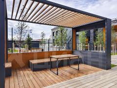 Жилой комплекс состоит из шести монолитно-каркасных домов переменной этажности (921 этаж), образующих замкнутый двор с контролируемым доступом. Территория благоустроена: ландшафтное озеленение, прогулочные аллеи с арт-объектами, современные детские и спортивные площадки с безопасным покрытием. Для автомобилей предусмотрено 456 парковочных мест, включая гостевые. Инфраструктура комплекса включает кладовые на цокольных этажах, колясочные, электронные информационные табло и безбарьерную среду для маломобильных жителей.