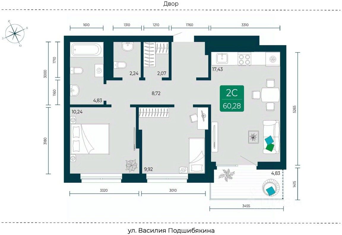Продается двухкомнатная квартира с предчистовой отделкой в ЖК "Уездные кварталы" на 3 этаже. Общая площадь: 60.28 кв.м., жилая: 20.16 кв.м., площадь просторной кухни-столовой: 17.43 кв.м. Комнаты изолированные, все окна выходят на одну сторону. В квартире одна лоджия, один совмещенный и один раздельный санузел. Высота потолков 2.7 м.