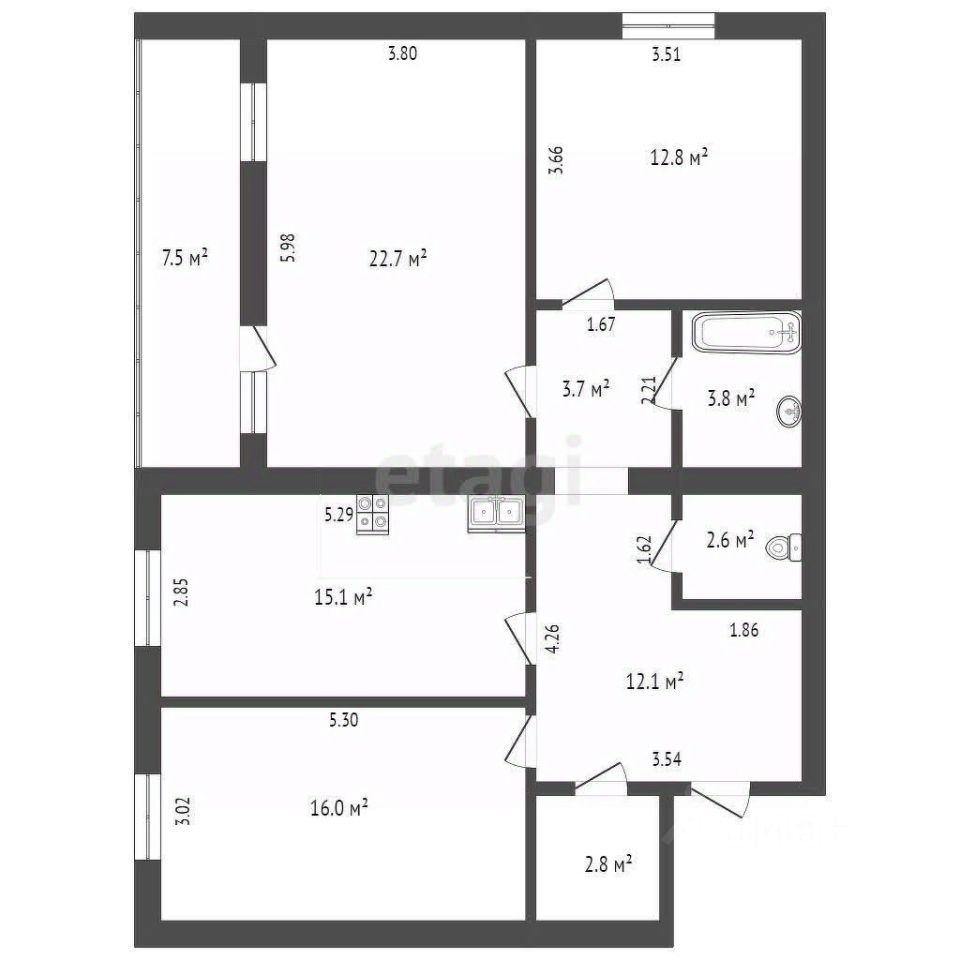 - полноценная "трёшка" с большой кухней 15 кв.м.;
