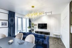 - 74, 9м² свободы и стиля ( большая кухня-гостиная, спальня, детская комната, гардеробная и 2 с/у) с дизайн -ремонтом по мотивам фильма "Жить жизнь"