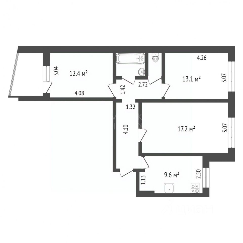 Трехкомнатная квартира с мебелью 65 м² для семьи с историей.