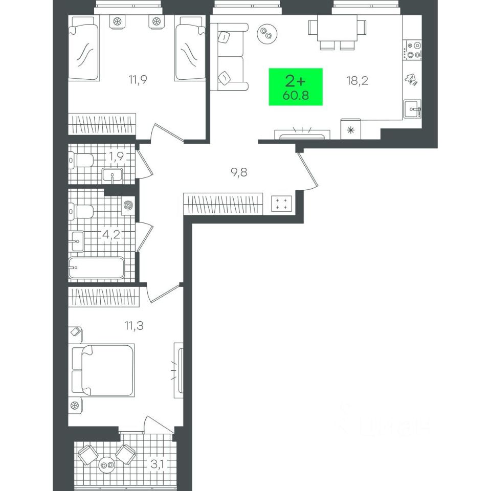 Продаётся 2-комнатная квартира в строящемся доме (3-В7.3 (Малкова, 17)), срок сдачи: III-кв. 2026, общей площадью 60.8 кв.м., на 7 этаже. Компания 4D приступила к строительству нового жилого комплекса "Гранд квартал". Новый ЖК находится в зеленой зоне Калининского района, южнее микрорайона Тюменская слобода.