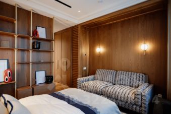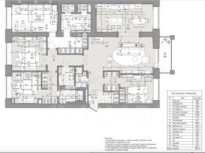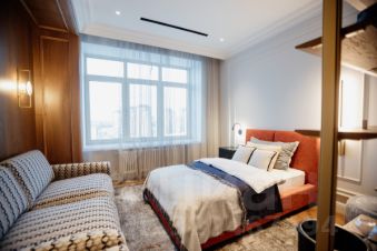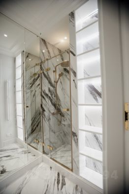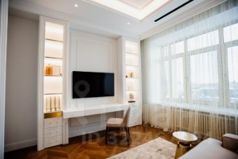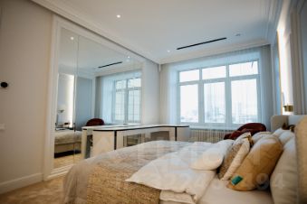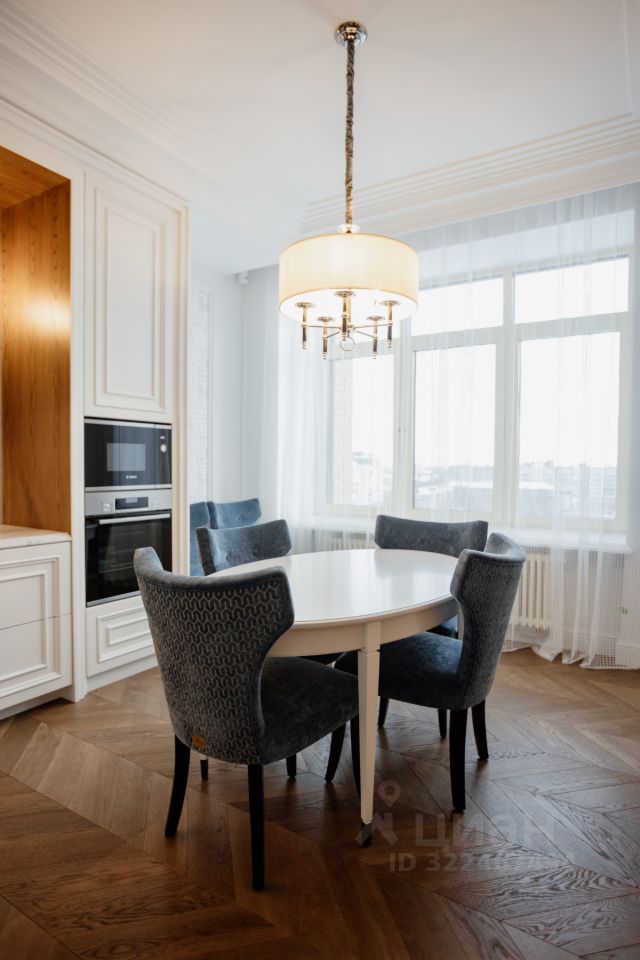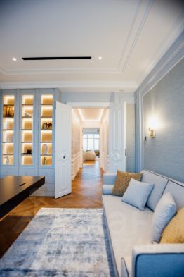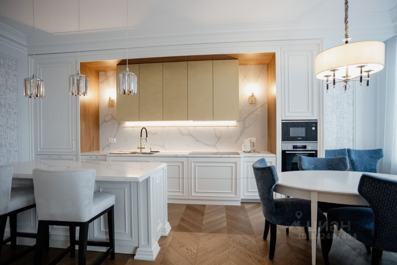 Просторная кухня-гостиная, три спальни, каждая со своим санузлом, прозрачная гардеробная и уютный кабинет. Паркетная доска — английская елка. Высота потолков — 3 метра.