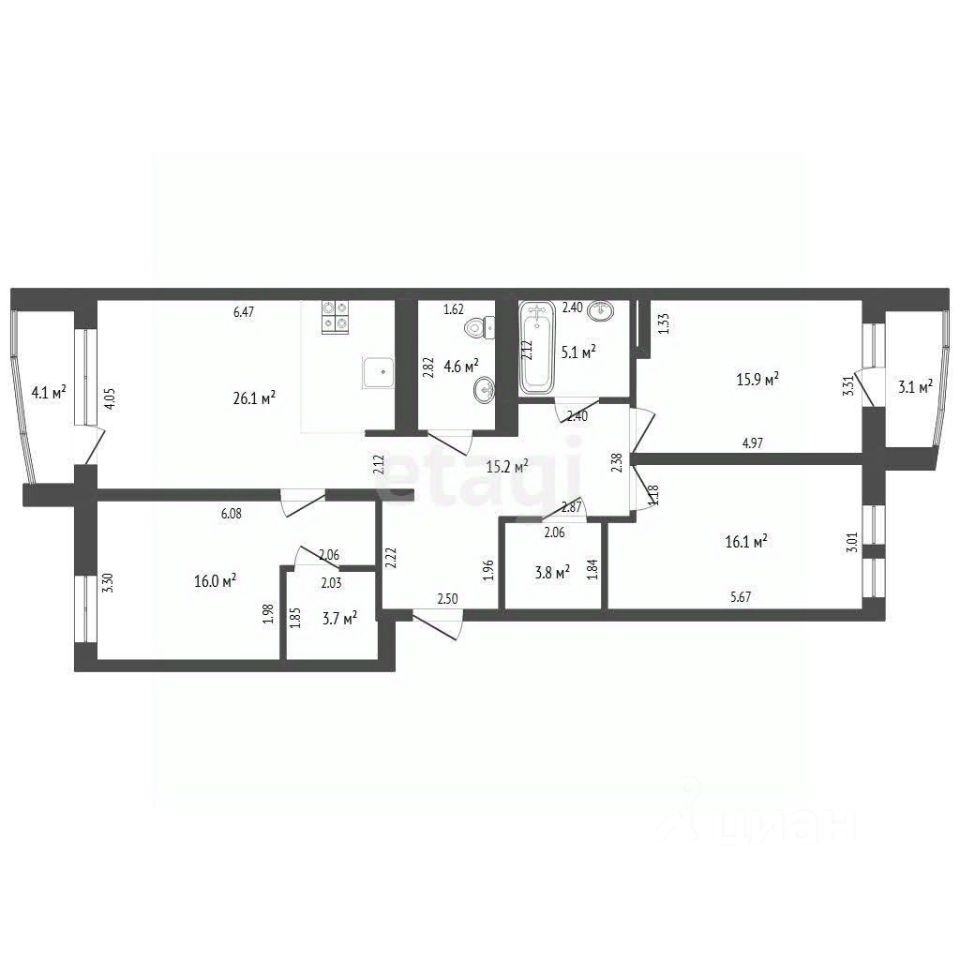 ОБЪЕКТ: трёхкомнатная квартира площадью 106,8 кв.м. на 18 этаже 19-этажного дома