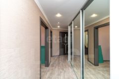 На стенах прочные устойчивые к механическим повреждениям обои под покраску, на полу плотный качественный коммерческий линолеум и итальянская плитка, в сан.узлах кафель.