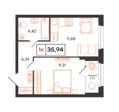 Продаётся 1-комнатная квартира в строящемся доме (Корпус 4Б (Полевая, д. 117, корпус 13)), срок сдачи: IV-кв. 2026, общей площадью 35.94 кв.м., на 16 этаже. Новый жилой комплекс "Фатера" от Специализированного застройщика "Рубин" расположен по адресу: г. Тюмень, по ул. Полевая.