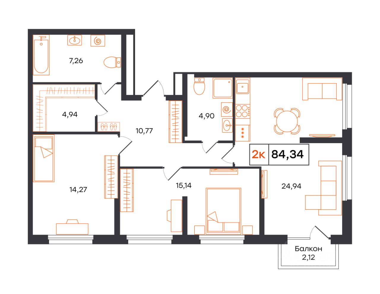 Продаётся 3-комнатная квартира в строящемся доме (Корпус 4Б (Полевая, д. 117, корпус 13)), срок сдачи: IV-кв. 2026, общей площадью 84.34 кв.м., на 16 этаже. Новый жилой комплекс "Фатера" от Специализированного застройщика "Рубин" расположен по адресу: г. Тюмень, по ул. Полевая.