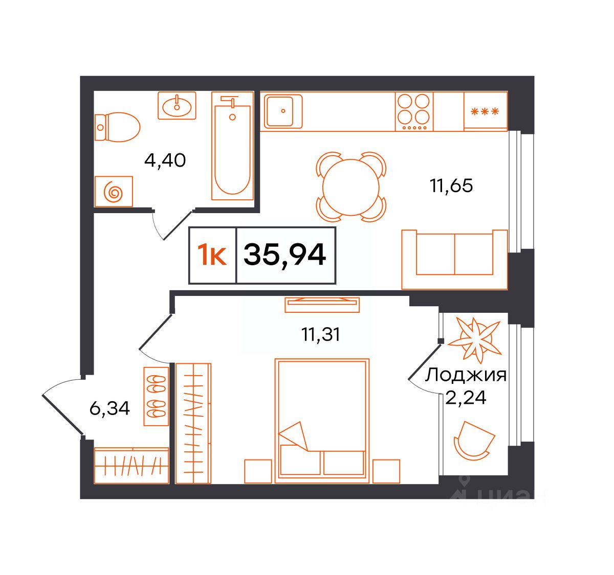 Продаётся 1-комнатная квартира в строящемся доме (Корпус 4А (Полевая, д. 117, корпус 12)), срок сдачи: IV-кв. 2026, общей площадью 35.94 кв.м., на 9 этаже. Новый жилой комплекс "Фатера" от Специализированного застройщика "Рубин" расположен по адресу: г. Тюмень, по ул. Полевая.