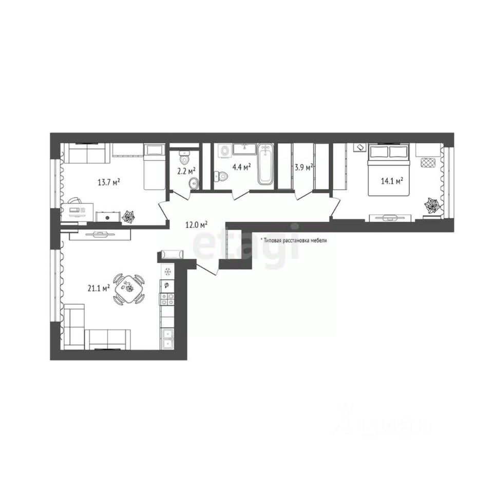 Формат квартиры обеспечивает идеальное пространство для проживания семьи.